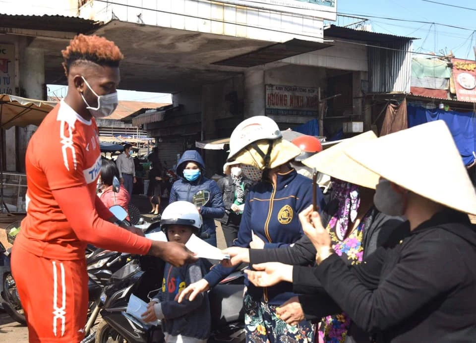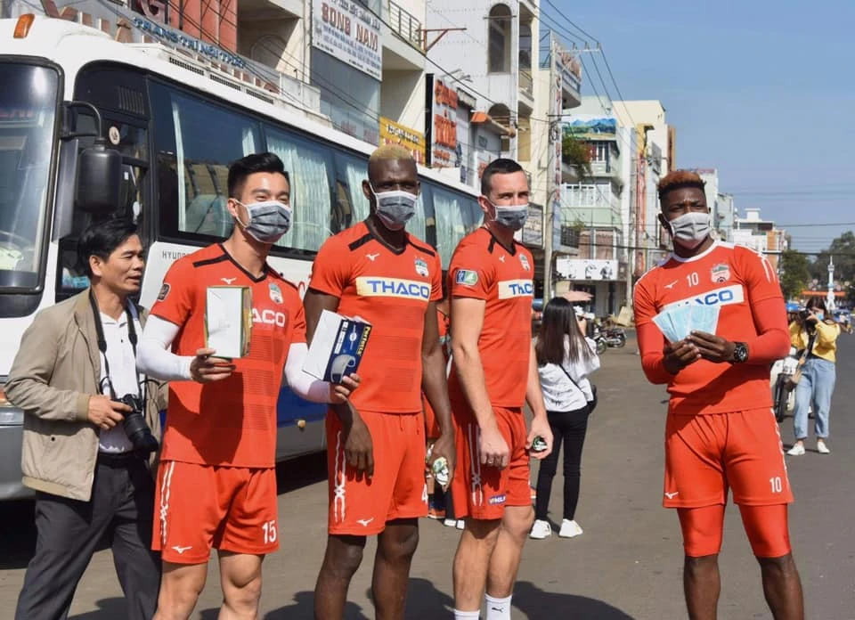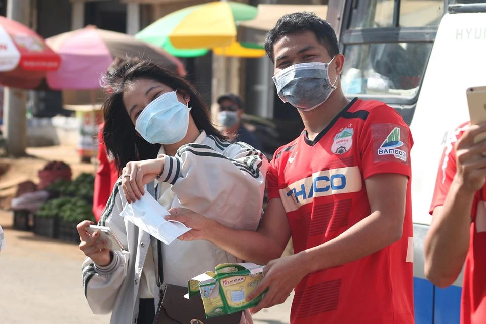 Chiều 3-2, ban huấn luyện và các cầu thủ đội HA Gia Lai bất ngờ xuất hiện tại chợ trung tâm thành phố Pleiku để tiến hành chiến dịch tuyên truyền và phát khẩu trang miễn phí cho người dân trước tình hình diễn biến phức tạp của đại dịch Corona.
