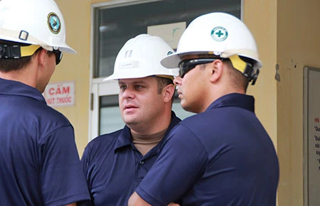 Hơi nóng vẫn hầm hậm phả ra từ nền bê tông. Cái nắng oi bức khiến những người lính Mỹ nhễ nhại mồ hôi. Nhưng công việc của họ vẫn không được phép gián đoạn. “Chúng tôi có thời hạn sáu ngày để hoàn thành công việc này. Nhưng thời tiết thì thật sự không dễ chịu chút nào. Rất nắng nóng. Chúng tôi sẽ cố gắng hoàn thành nhiệm vụ của mình để người dân địa phương có một trạm y tế mới. Ngày 14-6, chúng tôi sẽ bàn giao lại cho người dân và chính quyền địa phương” - Kloeker, Trưởng đoàn hải quân Mỹ, chia sẻ.