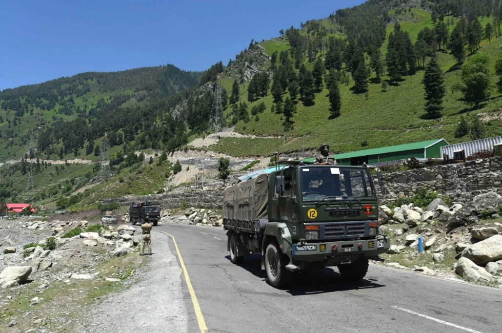Xe tải của quân đội Ấn Độ trên đường cao tốc đi vào Ladakh. Ảnh: EPA-EFE