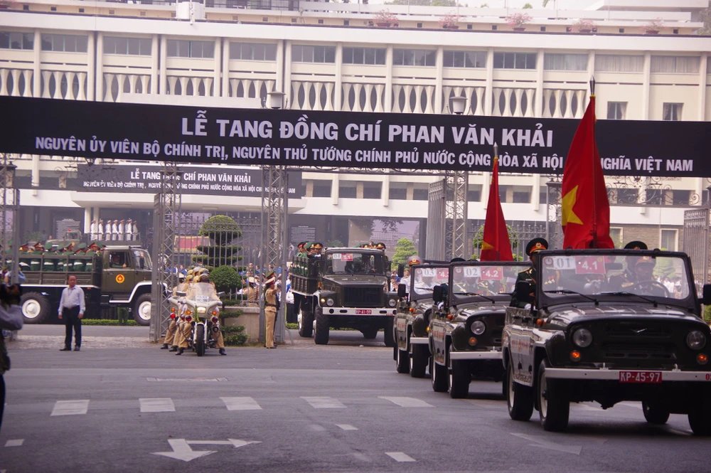 Linh cữu nguyên Thủ tướng Phan Văn Khải được đưa ra khỏi Hội trường Thống Nhất để về quê nhà Củ Chi làm lễ an táng.
