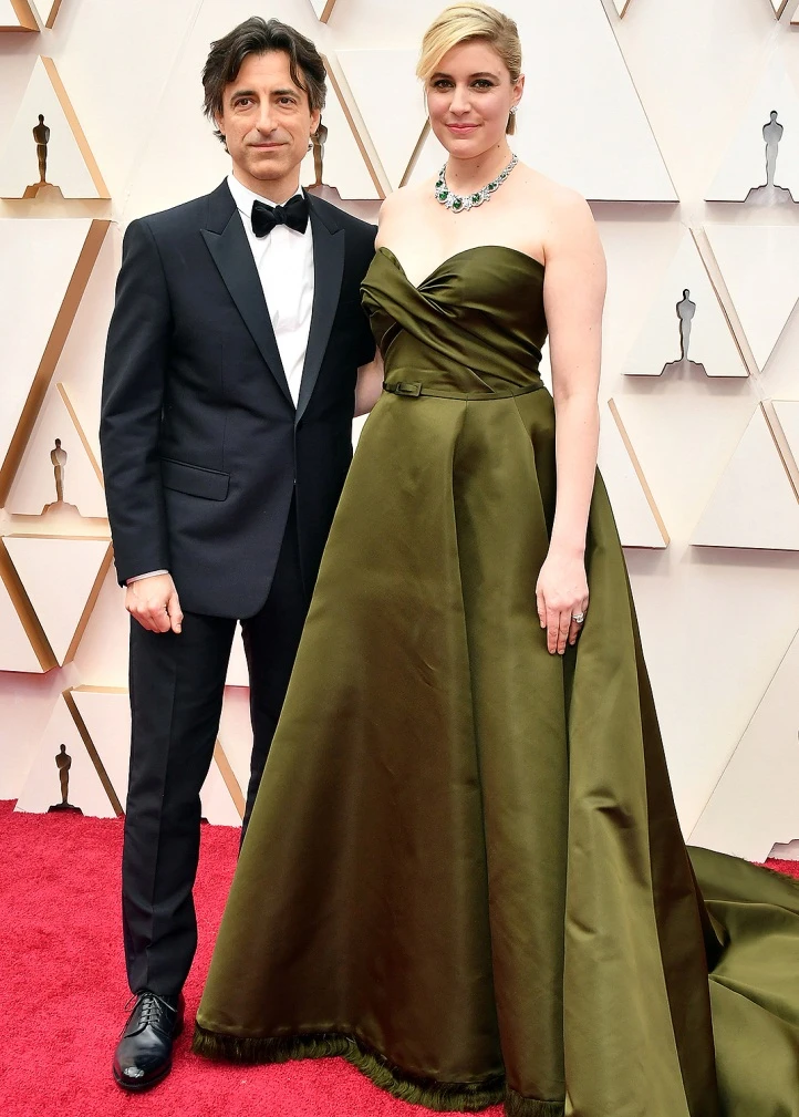 Nữ đạo diễn Greta Gerwig sánh bước trên thảm đỏ cùng người tình là Noah Baumbach, đạo diễn của Marriage Story. Cả hai được coi là bộ đôi đạo diễn đẹp nhất Hollywood hiện nay.