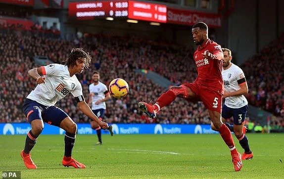 Wijnaldum bấm bóng khéo léo loại bỏ hậu vệ và thủ môn của Bournemouth để nhân đôi cách biệt.