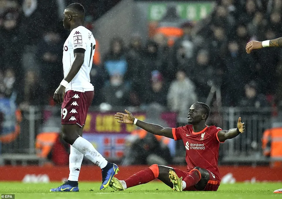 Cầu thủ bên phía Liverpool có 2 lần bị phạm lỗi trong vòng cấm nhưng không được hưởng phạt đền. Ảnh: EPA.