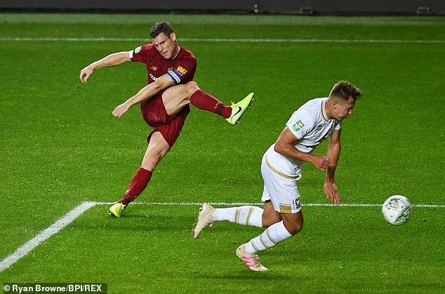 James Milner có cú sút khiến thủ môn của MK Don trở tay không kịp.