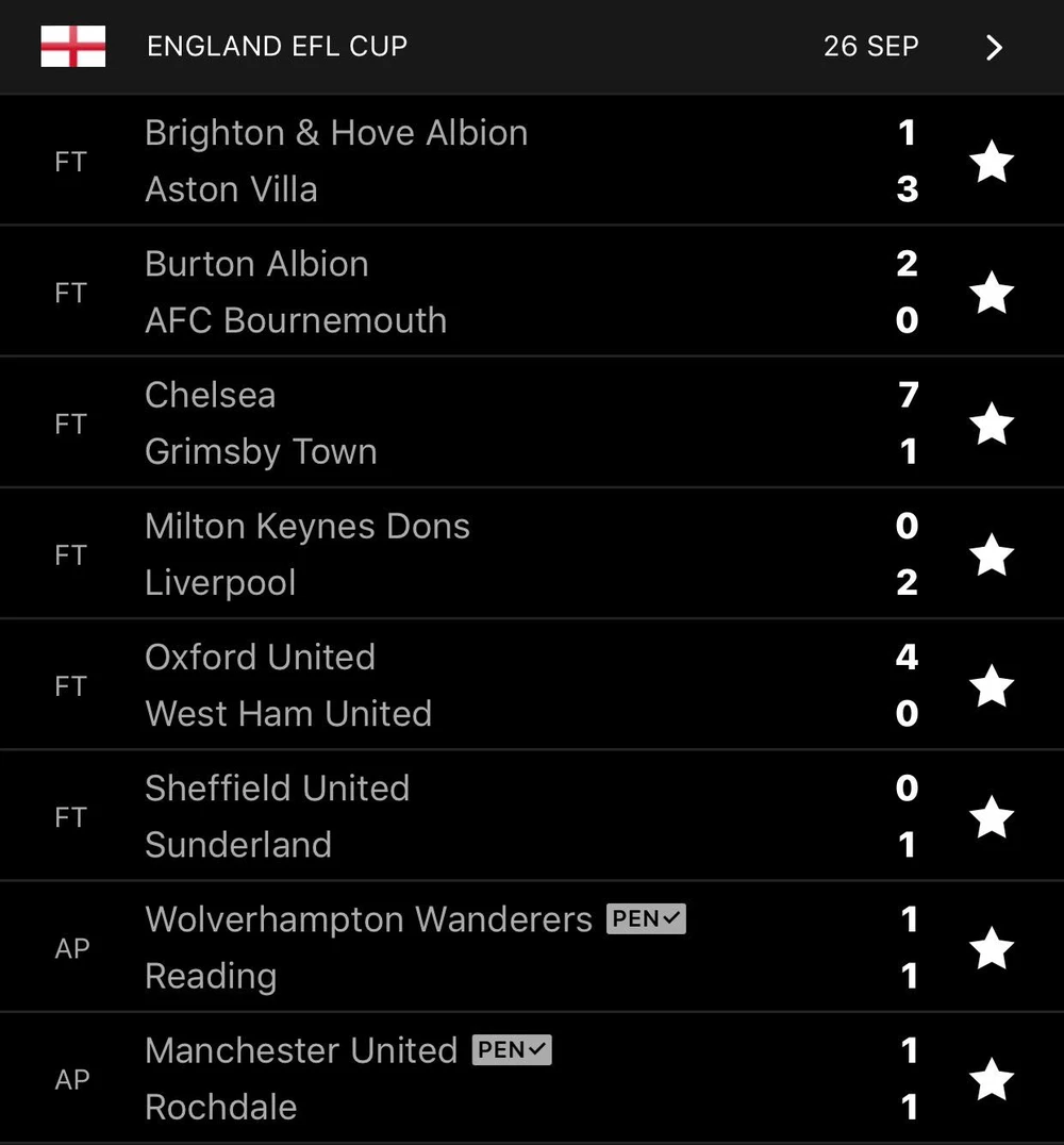 Các “ông lớn” tại đấu trường Premier League là Liverpool, Man. United và Cheslea tiếp tục thi đấu tại vòng 3 League Cup. Chỉ gặp phải những đội bóng đang đá ở những giải đấu thấp hơn, Liverpool, Man. United và Chelsea đều giành chiến thắng để đi tiếp vào vòng trong.