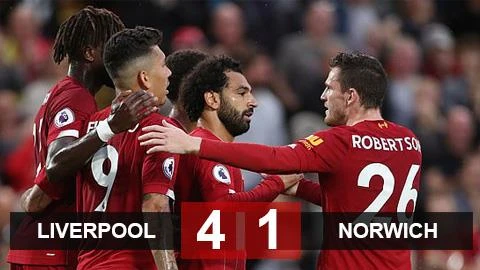 Liverpool đã có trận khai mạc Premier League thật ngọt ngào trước tân binh Norwich. Đó là sự khác biệt lớn về đẳng cấp khi đương kim vô địch Champions League, á quân Premier League gặp một đối thủ mới dò dẫm lên hạng và sớm có bốn bàn thắng ghi chỉ trong hiệp 1 (đội trưởng Grant Hanley của Norwich đá phản lưới nhà, Salah, Van Dijk và Origi lần lượt ghi bàn).