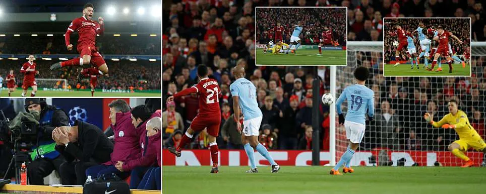 Đến phút 31, Salah tạt bóng tuyệt đẹp cho Mane băng vào đánh đầu dũng mãnh nâng tỉ số lên 3-0 cho Liverpool. Bên ngoài sân, Pep Guardiola ôm đầu, ôm mặt không hiểu chuyện gì đã xảy ra.