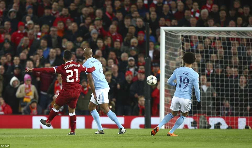 Phút 20, Oxlade-Chamberlain thực hiện quả rocket cực mạnh ngoài vòng cấm đưa bóng ghim thẳng vào lưới, không cho Ederson cơ hội cản phá nào. 2-0 cho Liverpool.