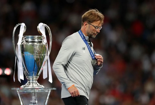 Klopp bước qua chiếc cúp Champions League sau trận thua Real Madrid nhưng 1 năm sau ông đã giành được nó cùng Liverpool. ẢNH: MIRROR
