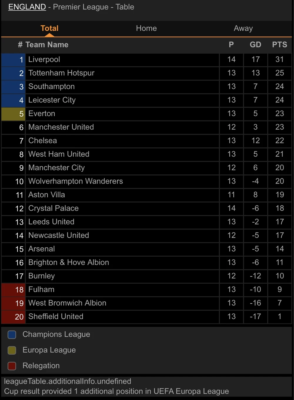 Thắng trận này, Liverpool giữ vững ngôi đầu bảng với 31 điểm, còn Crystal Palace có 18 điểm xếp vị trí thứ 12.