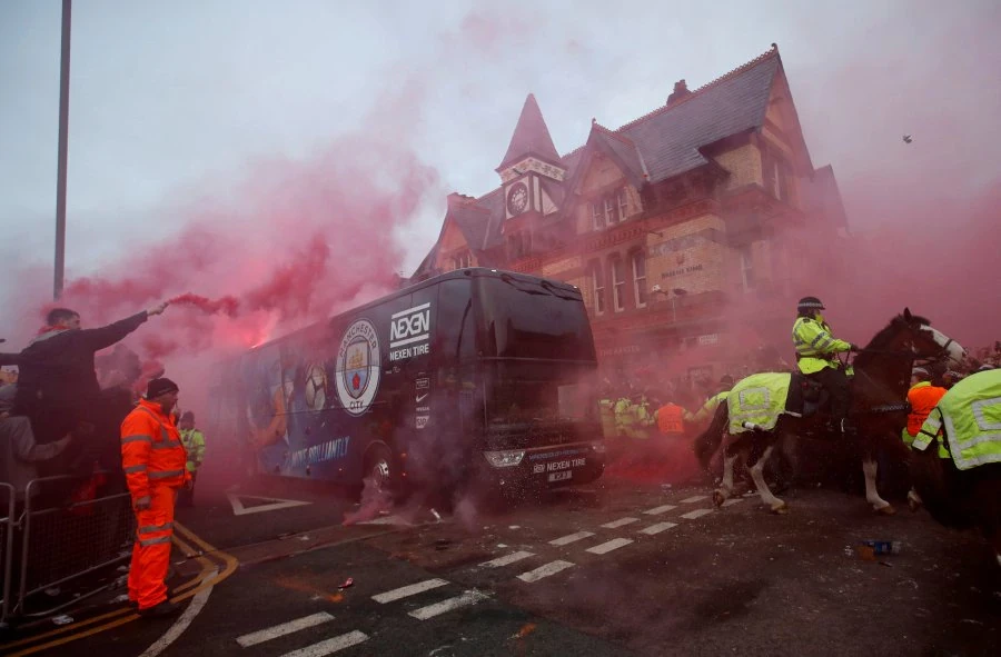 Khung cảnh khi chiếc xe chở đội Man. City đến Anfield là rất kinh khủng. Hai bên đường dẫn vào Anfield, hàng ngàn cổ động viên Liverpool đứng chật ních, họ đốt pháo sáng, la hét… và rồi điều đáng tiếc xảy ra.
