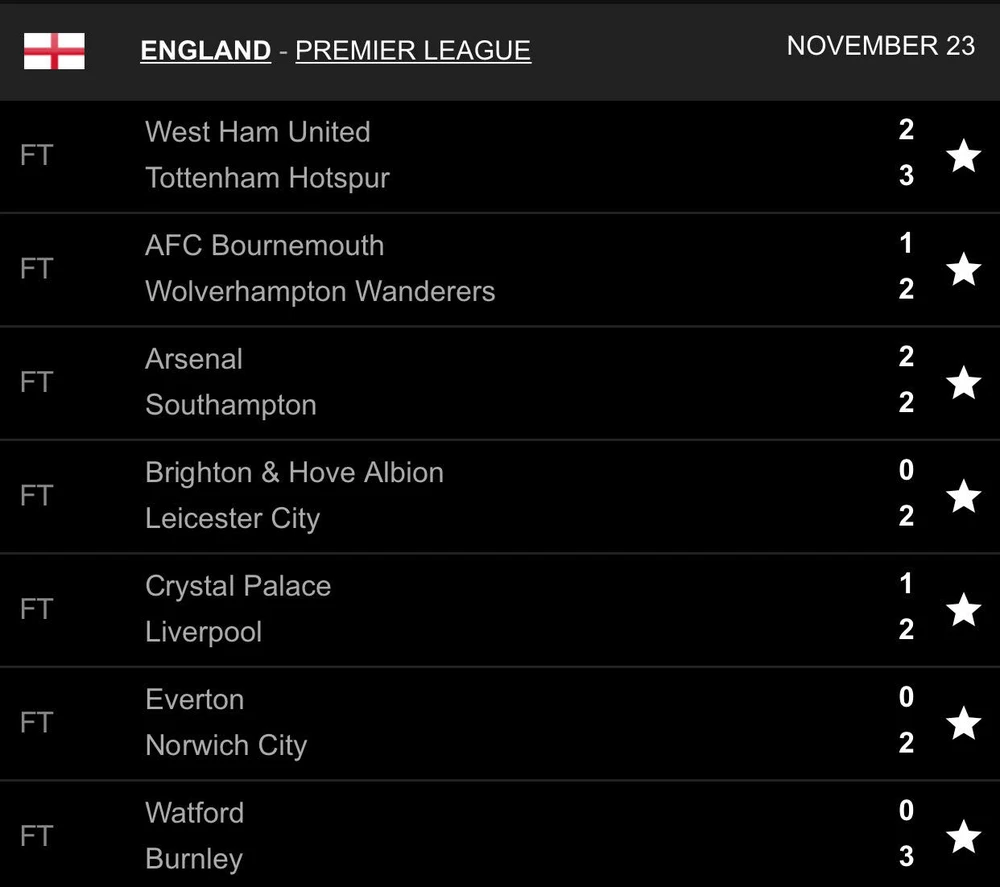Sang hiệp 2, Southampton bất ngờ nâng tỉ số lên 2-1 do công của James Ward Prowse, phải đợi đến phút bù giờ Arsenal mới có được trận hòa nhờ pha lập công thứ hai của Lacazette. Để Southampton “cầm chân” trên sân nhà với tỉ số 2-2, Arsenal gần như tuyệt vọng tại cuộc đua tốp 4 Premier League năm nay. Sau 13 vòng đấu, các “pháo thủ” chỉ có được vị trí thứ 7 với 18 điểm.
