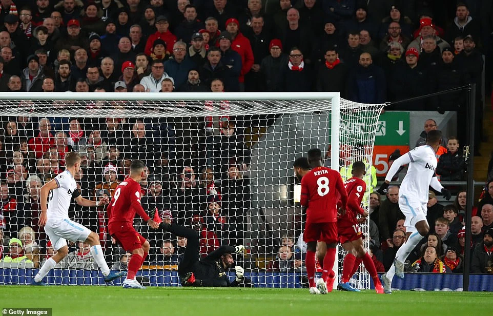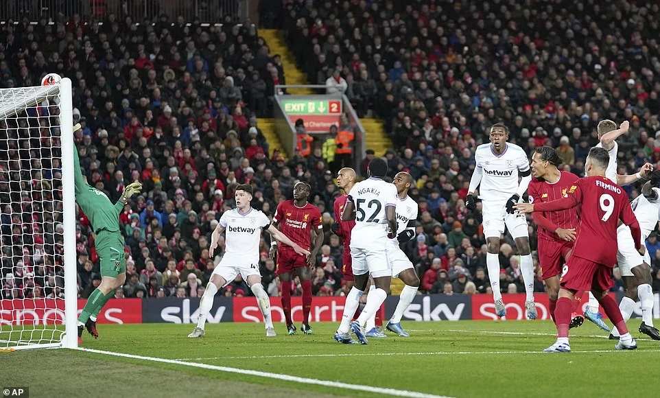 Khoảng thời gian còn lại của hiệp 1, Liverpool liên tiếp gia tăng sức ép để tạo nên thế trận một chiều lên phần sân của đối phương. Các chân sút trên hàng công cùng với hậu vệ Alexander-Arnold thi nhau “bắn phá” khung thành của West Ham nhưng tất cả những pha dứt điểm của các cầu thủ đội chủ nhà đều đi chệch khung thành. Thậm chí phút 40, Liverpool có cơ hội tái lập thế dẫn bàn từ pha đánh đầu của Van Dijk nhưng may mắn tiếp tục đứng về phía West Ham khi bóng từ đầu trung vệ người Hà Lan đi thẳng vào xà ngang khung thành.
