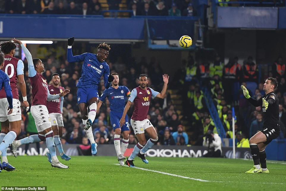 Sau nửa đầu hiệp 1 gặp nhiều khó khăn với lối chơi chắc chắn của Aston Villa, chủ nhà Chelsea cũng có bàn thắng mở tỉ số nhờ công của Tammy Abraham. Phút 23, từ pha tạt bóng của Reece James, tiền đạo người Anh bật cao đánh đầu giúp Chelsea dẫn trước 1-0.