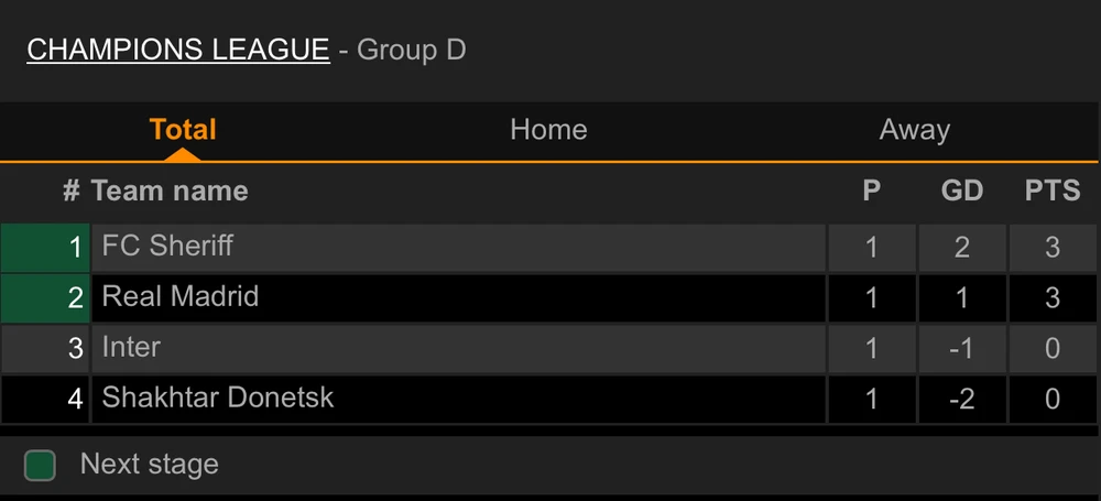 Còn tại bảng D, “đại chiến” giữa chủ nhà Inter Milan và Real Madrid kết thúc với chiến thắng 1-0 nghiêng về đội khách Real. Bàn thắng duy nhất mà thầy trò HLV Ancelotti ghi được do công của Rodrygo ở phút 89. Ở cặp đấu còn lại của bảng D, Sheriff thắng Shakhtar Donetsk 2-0 để chiếm vị trí đầu bảng.