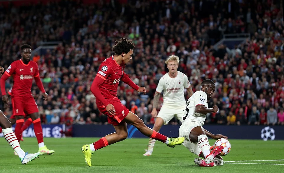 Liverpool sớm làm chủ thế trận, khi ở phút thứ 9 “The Kop” đã có được bàn thắng mở tỷ số khi trung vệ Tomori của AC Milan phản lưới nhà sau đường căng ngang của Arnold bên phía Liverpool.