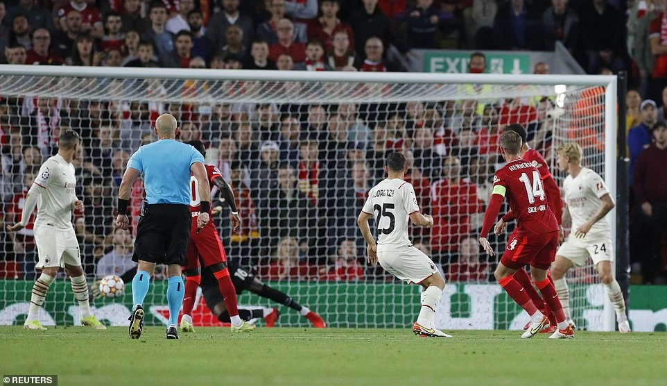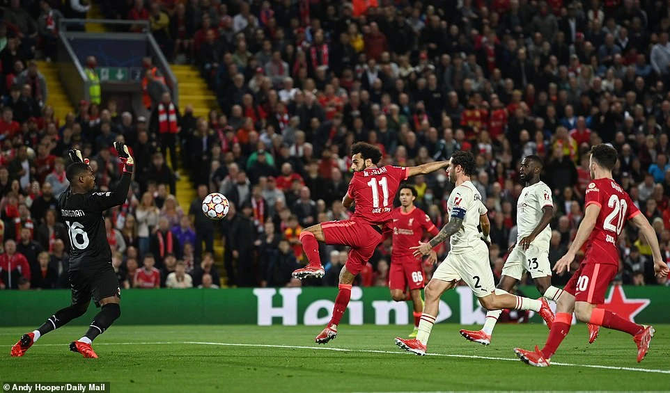 Đến phút 14, Liverpool có cơ hội nhân đôi cách biệt khi tiền vệ Bennacer của đội khách để bóng chạm tay trong vòng cấm dẫn đến phạt đền. Tuy nhiên trên chấm 11 mét, Salah lại không thể đánh bại được thủ môn Maignan của AC Milan.