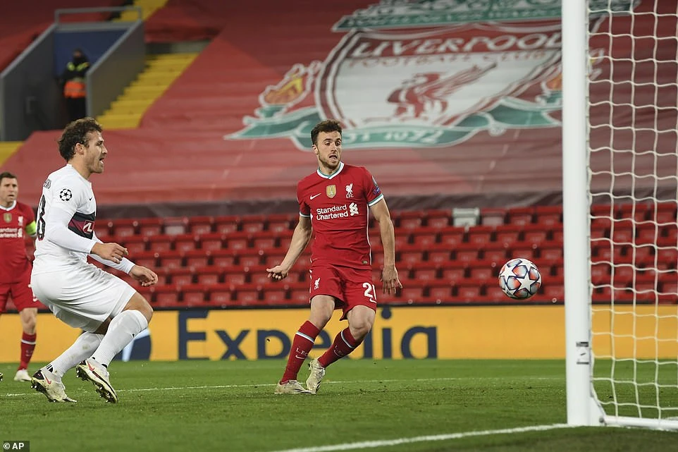 Tân binh Jota đi vào lịch sử khi ghi bàn thứ 10.000 cho Liverpool. ẢNH: AP
