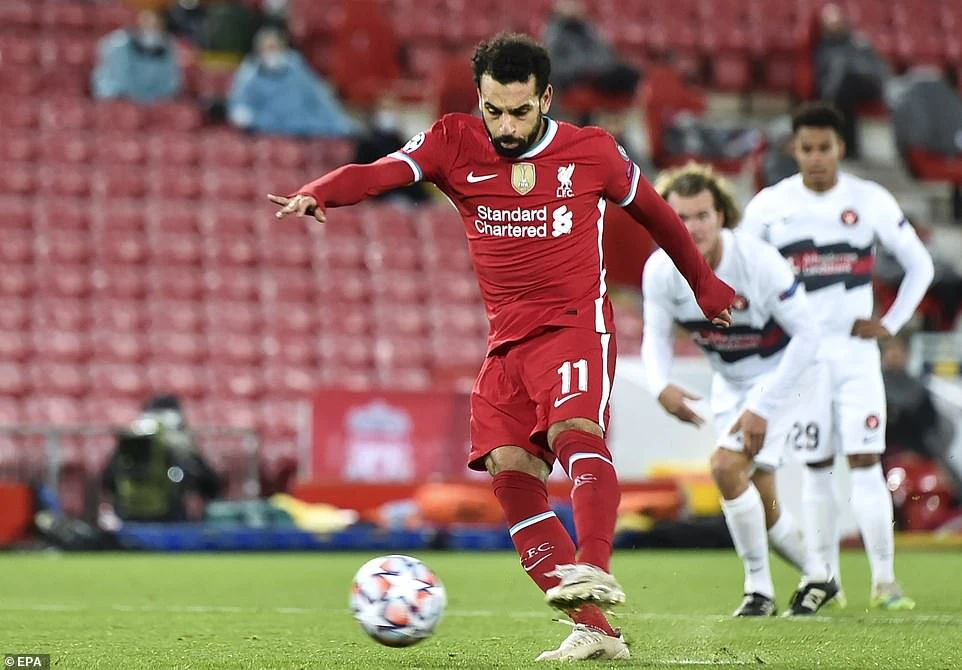 Salah ghi bàn ấn định tỉ số 2-0 trên chấm 11m. ẢN: EPA