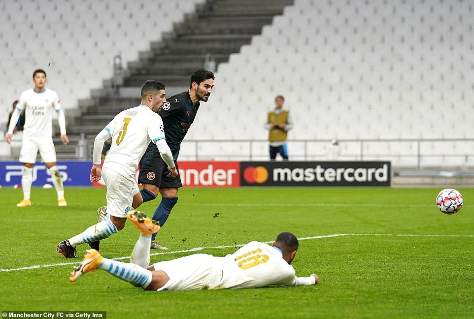 Đầu hiệp hai, Marseille cố gắng dâng cao tìm bàn gỡ và họ có ngay cơ hội với pha dứt điểm từ xa chạm cột dọc của Thauvin. Man City sau đó đáp trả với pha sút bóng chạm chân hậu vệ Marseille… lên trời từ cự ly rất gần của Sterling.