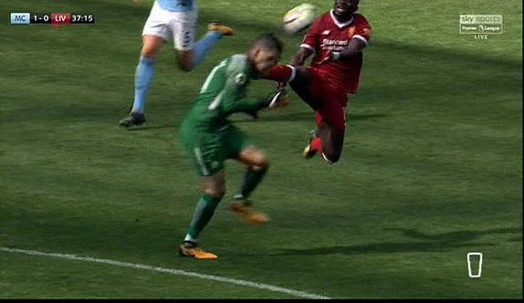 Mane ham bóng chơi cao chân gây chấn thương nặng cho thủ thành của Man City và xứng đáng nhận thẻ đỏ.