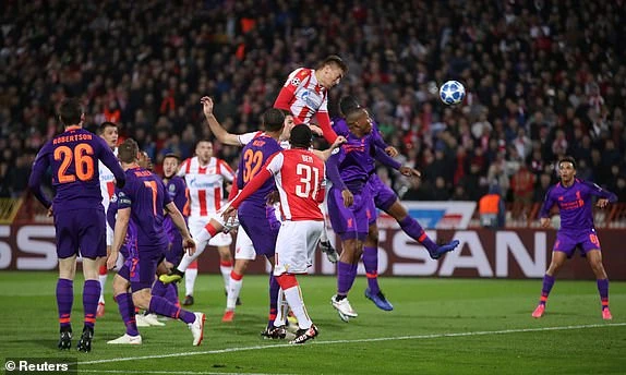 Crvena Zvezda với lợi thế sân nhà chủ động chơi bóng đôi công với Liverpool, các cầu thủ của HLV Jurgen Kloop rơi vào tình cảnh vô cùng khó khăn bởi lối chơi áp sát có phần thô bạo của Crvena Zvezda.