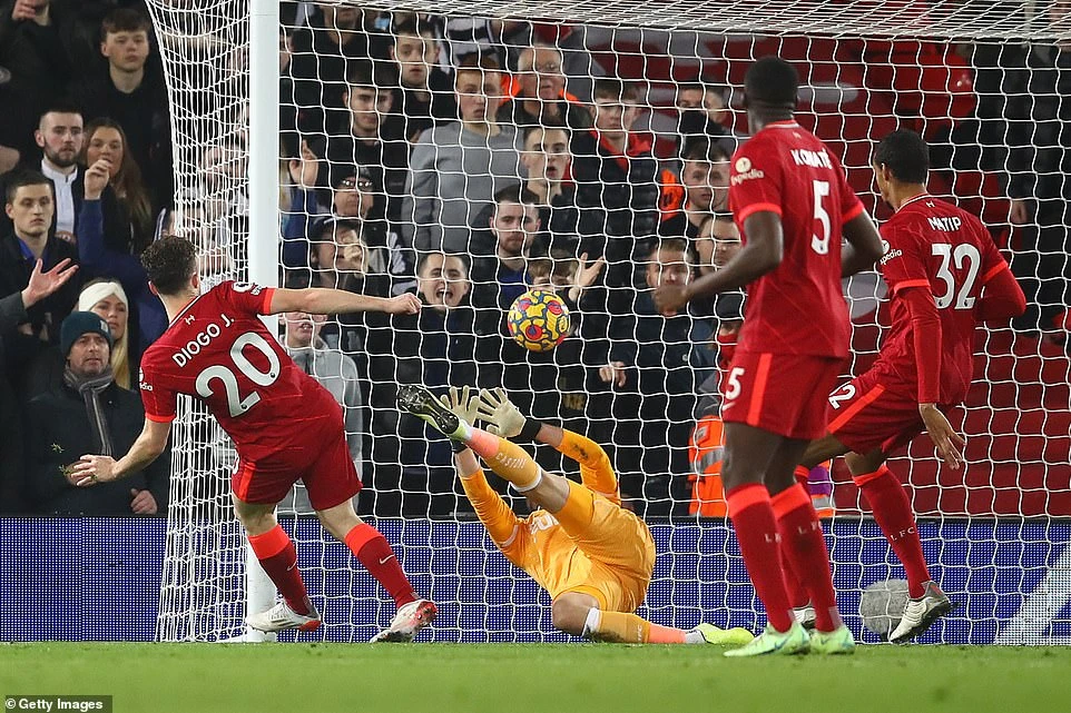 Jota gỡ hòa 1-1 cho Liverpool, với hai pha dứt điểm liên tiếp. Ảnh: Getty Images.