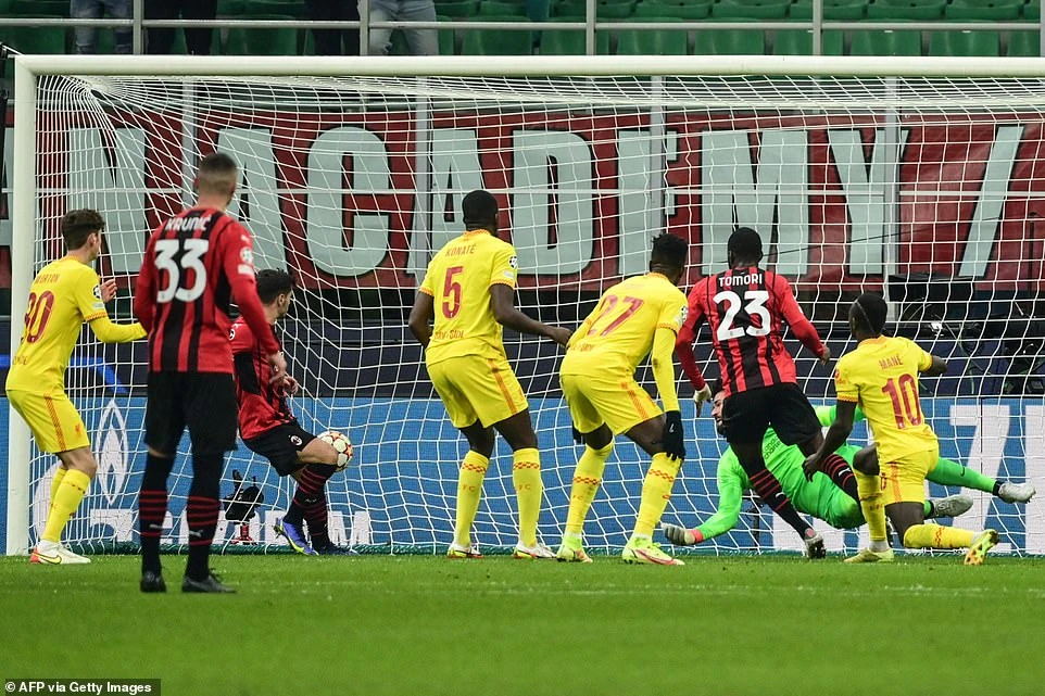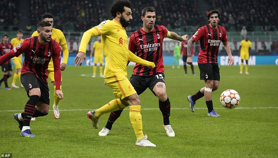 Đến chơi trên sân San Siro của AC Milan, “the kop” bất ngờ nhận bàn thua sớm ở phút 29. Từ tình huống phạt góc, trung vệ Tomori đệm bóng cận thành, giúp AC Milan vươn lên dẫn trước 1-0. Đến phút 36, Liverpool có được bàn thắng gỡ hòa 1-1 do công của tiền đạo Salah, từ cú sút trước vòng cấm của Chamberlain, thủ môn Maignan cản phá khiến bóng bật ra và Salah nhanh chóng có mặt để đệm bóng cận thành.