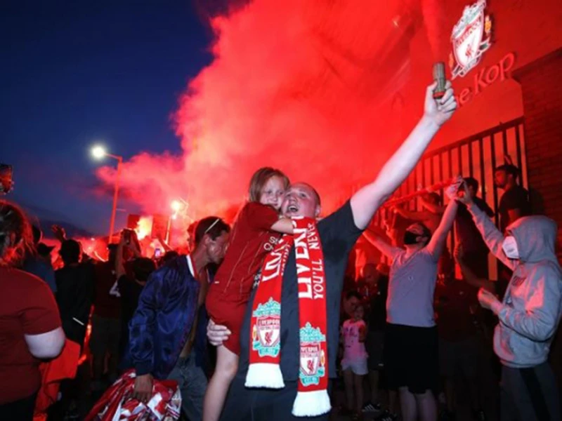 Ngoài sân Anfield, cờ xí, ô tô bật đèn, bóp còi inh ỏi, pháo sáng các loại và Champagne rực một màu đỏ. Trong không khí vui mừng đó, thỉnh thoảng lại nghe giọng HLV Klopp phát ra từ loa kêu gọi mọi người giữ giãn cách xã hội.