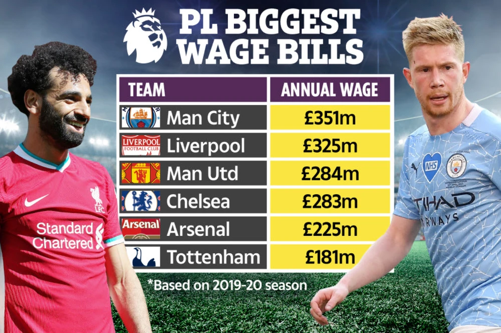 Tiền lương mùa giải 2019-2020 của nhóm Big Six Premier League. ẢNH: THE SUN