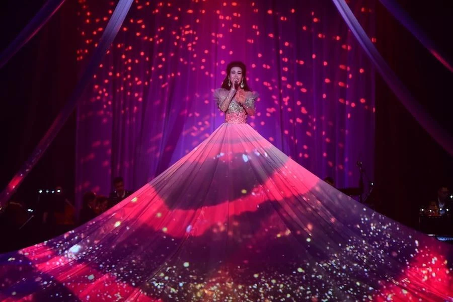 Hiệu ứng mapping đã giúp phần trình diễn "My heart will go on" của Võ Hạ Trâm ấn tượng hơn
