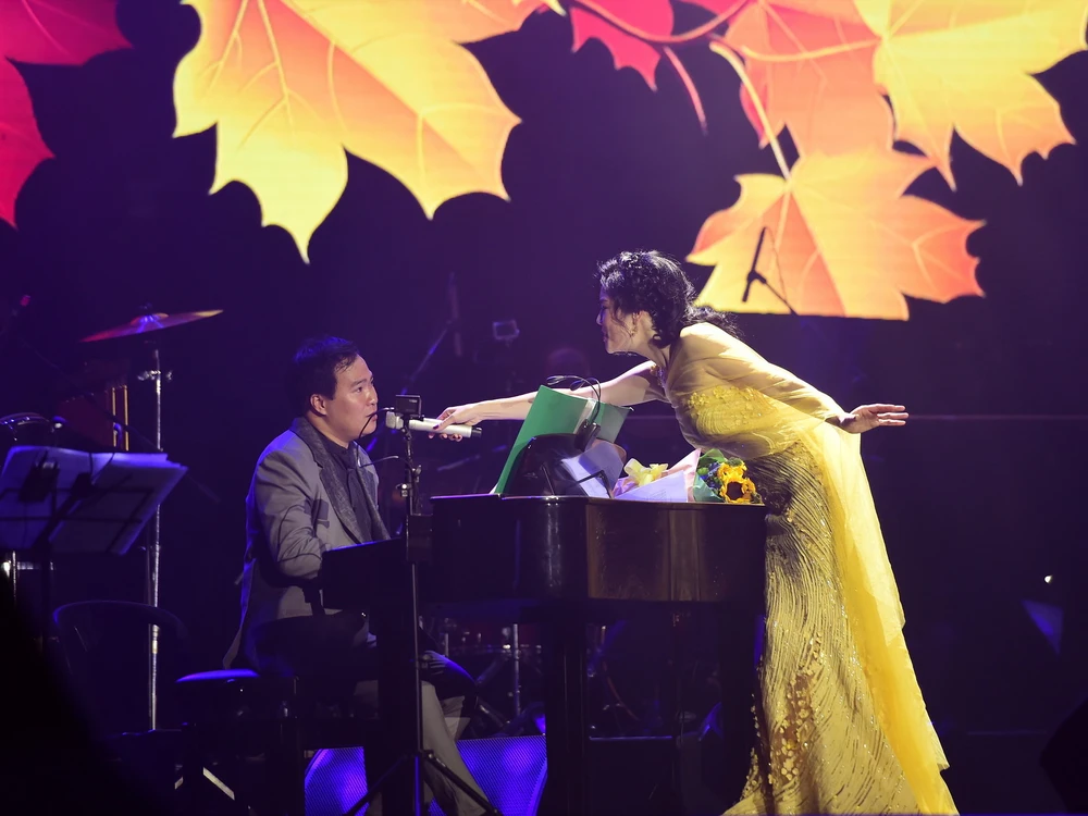 Thu Phương chia sẻ rằng, nếu không có những bài hát của Việt Anh thì không biết "mình sẽ là ai", dẫu "Dòng sông lơ đãng không còn như thời 1997, dòng sông giờ đã đi qua biết bao mùa lũ, có khi chẳng thể nào lơ đãng nhưng Thu Phương vẫn coi đó là câu chuyện của mình", ca sĩ Thu Phương xúc động nói - Ảnh: Lý Võ Phú Hưng