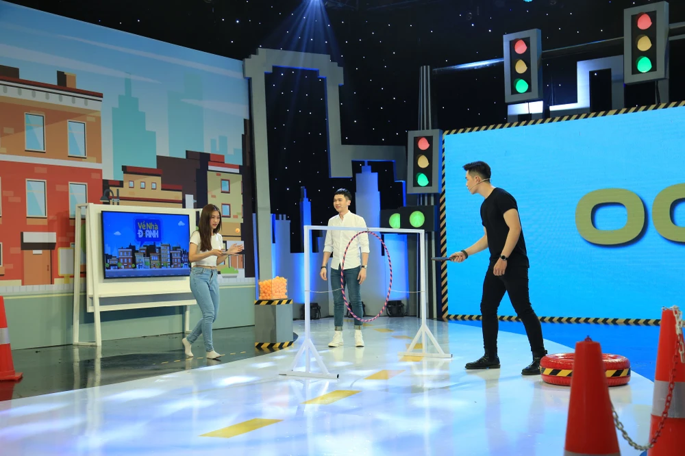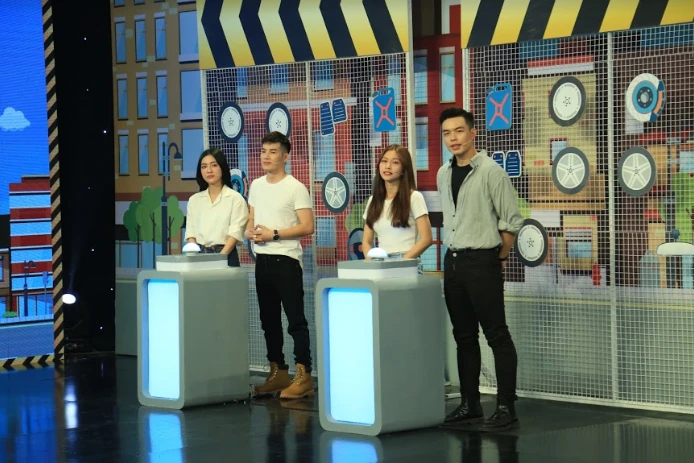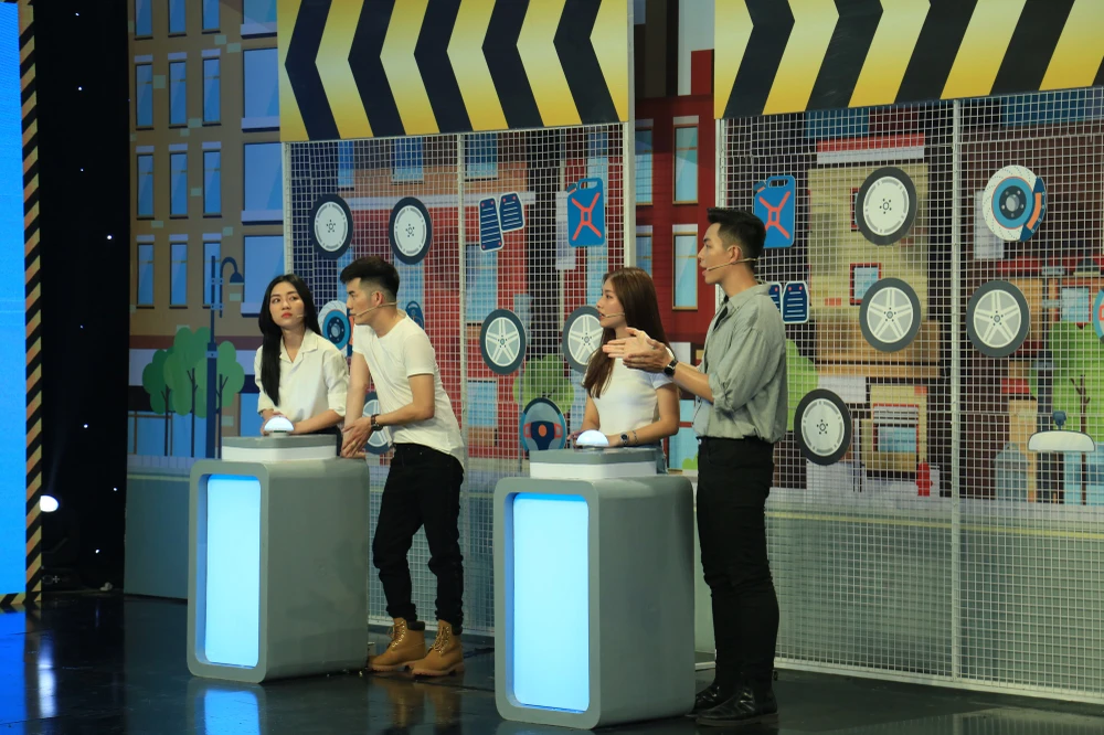 MC Minh Xù phỏng vấn nhanh đội Ô tô hoành tráng sau phần thi căng thẳng: “Sau khi trải qua các vòng chơi, đội em có rút ra được kinh nghiệm nào không?”.