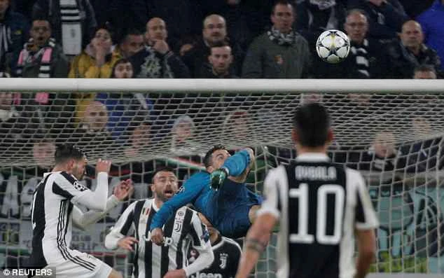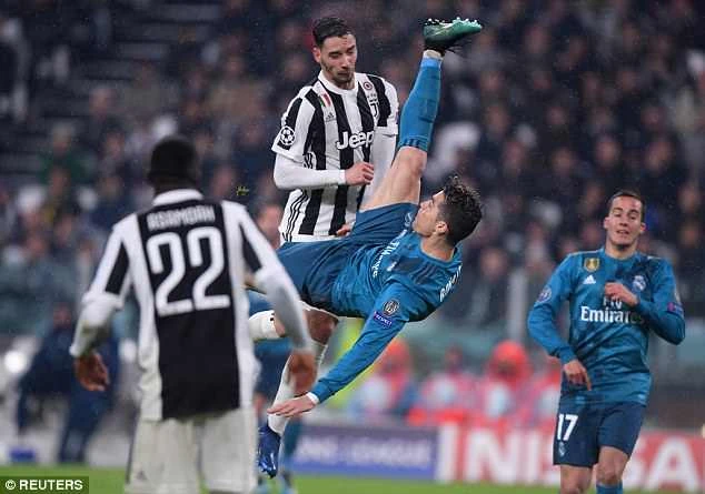 Đáng ngạc nhiên hơn, hình ảnh cho thấy Ronaldo tung người móc bóng giống y hệt bàn thắng Ronaldo ghi trong trận gặp Juventus đến từng động tác, từng chi tiết.