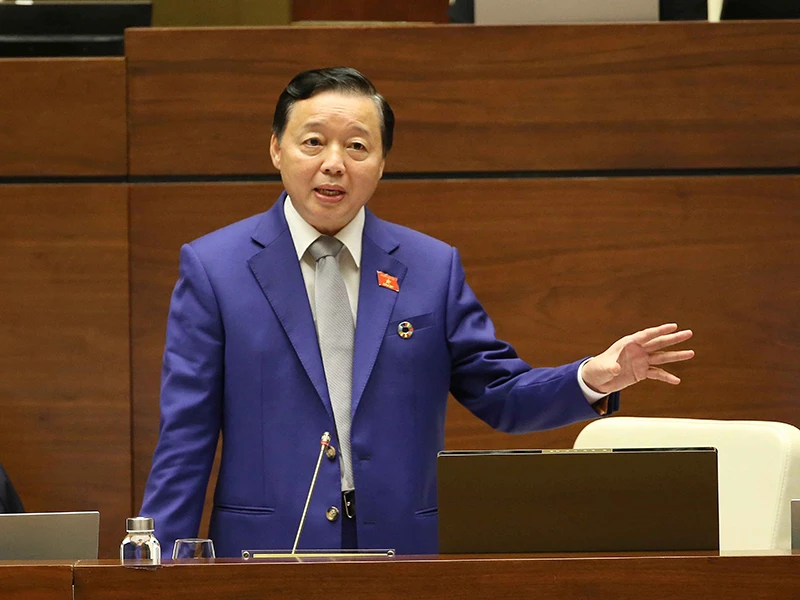 Bộ trưởng Bộ Tài nguyên và Môi trường Trần Hồng Hà giải trình ý kiến của đại biểu. Ảnh: TTXVN