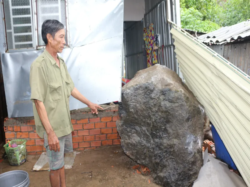 Hai tảng đá lớn từ núi Ba Hòn bất ngờ lăn xuống đè lên nhà dân.