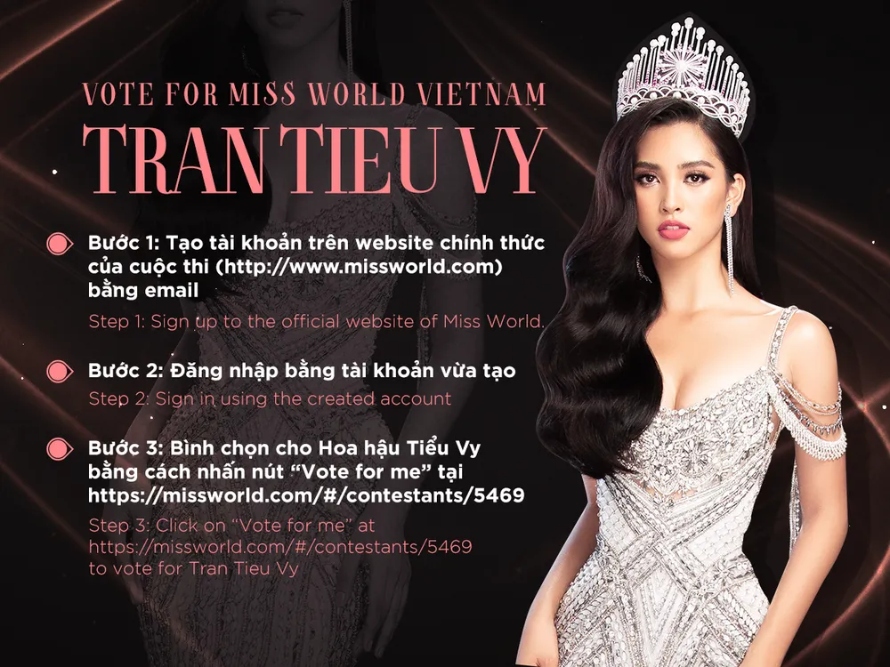 Hiện nay, người hâm mộ đang rất tích cực bình chọn cho Hoa hậu Tiểu Vy, đây cũng là tình cảm và sự kỳ vọng của khán giả Việt Nam đối với đại diện lần này tại Miss World.