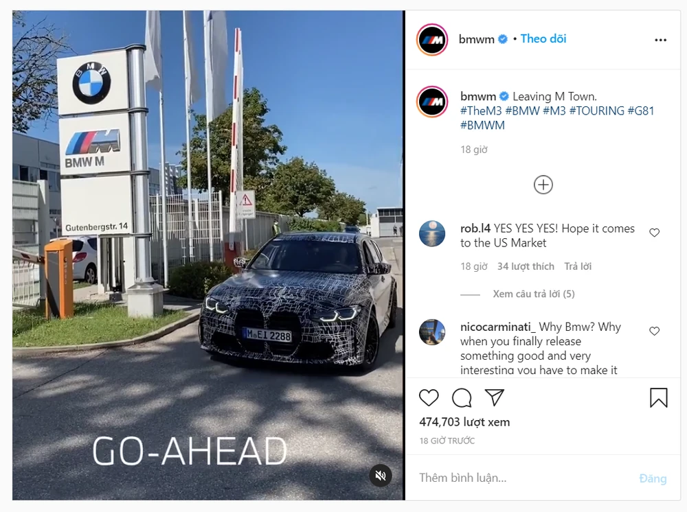 Một đoạn clip ngắn chiếc M3 Touring được đăng tải trên instagram chính thức của BMW M.