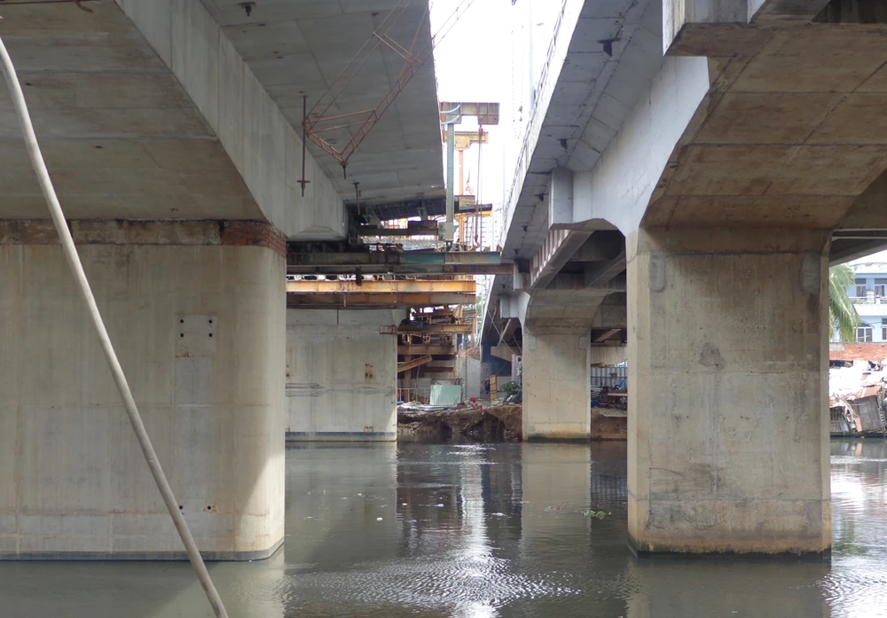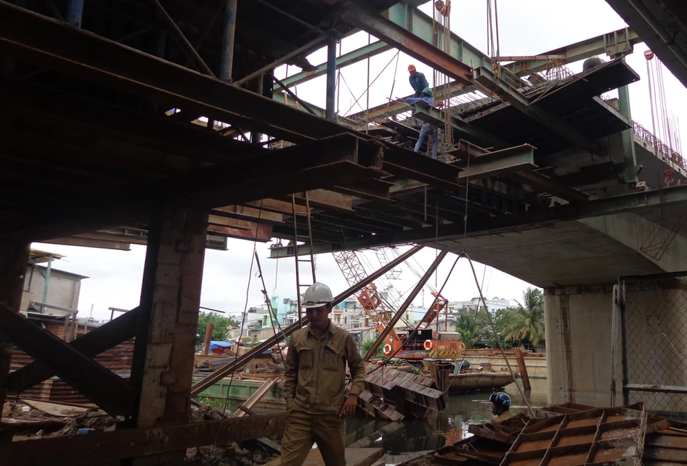Đến nay, nhịp chính bên phía Chợ Lớn qua, với bên dưới là đường Nguyễn Duy, quận 8 đã được lao lắp dầm xong và đang dựng lan can thành cầu.