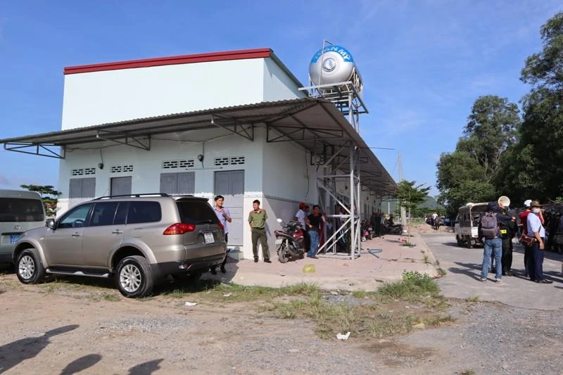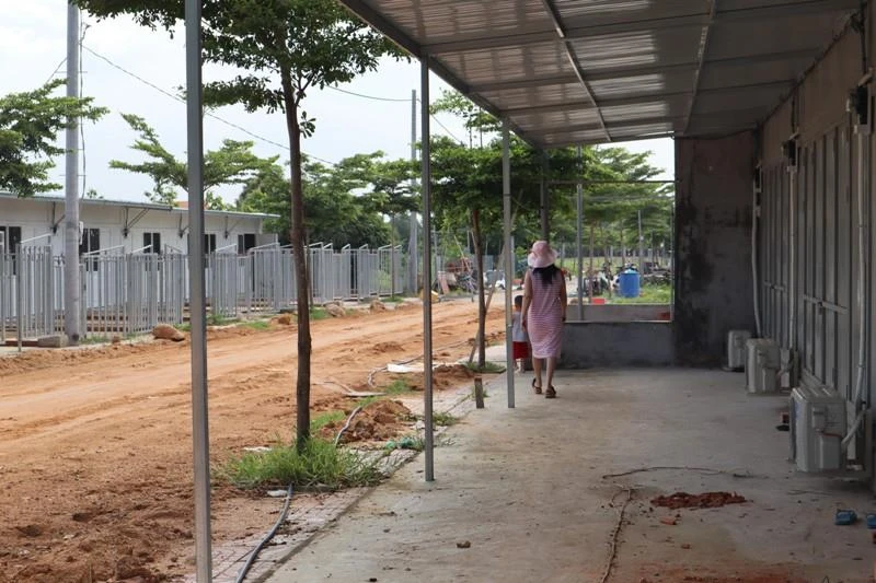 Nhà tiền chế bằng tôn, sắt và sàn gỗ đang được triển khai lắp đặt trên khu đất bị cưỡng chế.