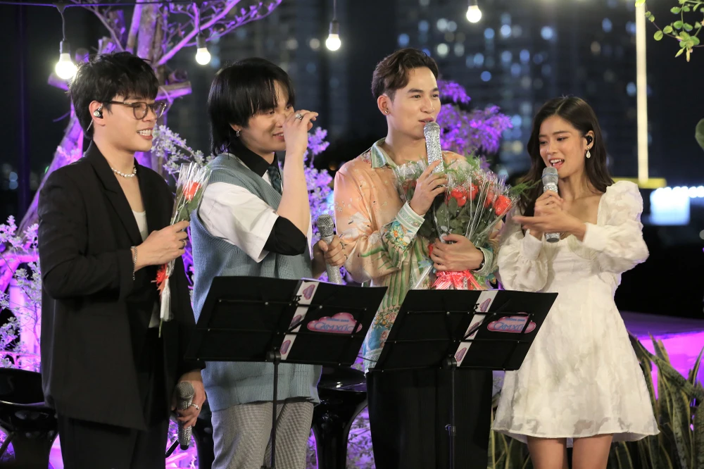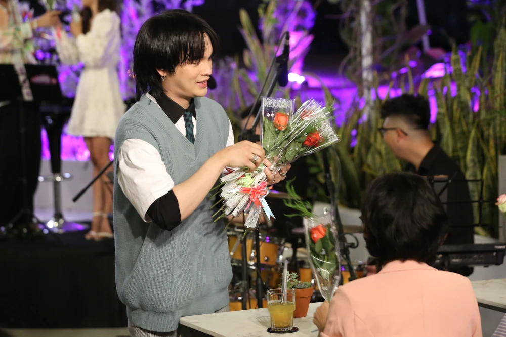 Gần cuối chương trình, các chàng trai của quán cà phê Không gian cảm xúc vô cùng chu đáo khi chuẩn bị những nhành hoa hồng tươi thắm gửi đến toàn thể khán giả nữ đến nghe nhạc.