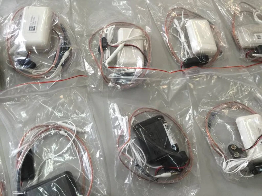 Ngoài ra, Công an TP Hà Nội còn tiến hành thu giữ một số loại thiết bị thu phát tín hiệu kích thước nhỏ (có lắp thẻ SIM) hoạt động như một điện thoại di động (thiết bị viễn thông đầu cuối) có kích thước 3 x 5 cm kết nối không dây với một tai nghe kích thước 1 cm gồm hai loại có dây đeo cổ và không dây.
