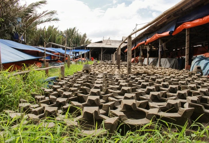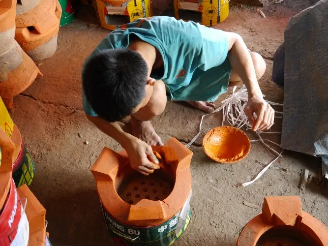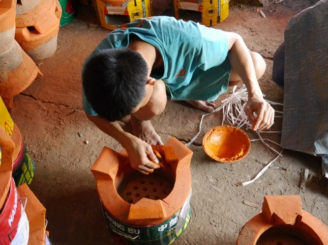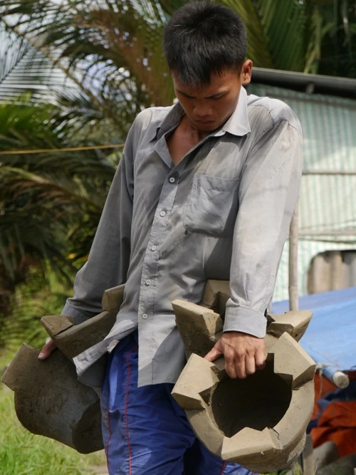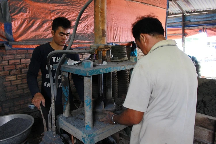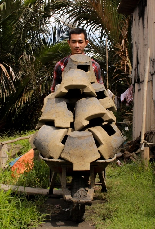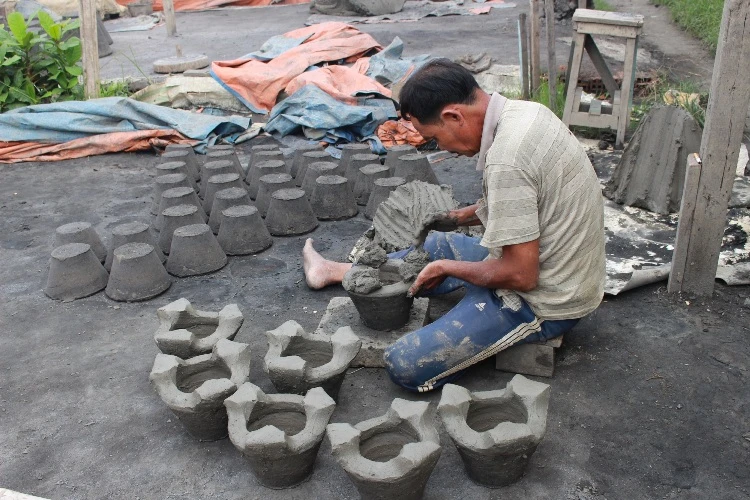 Nén đất để tạo nắp đậy cho những chiếc bếp