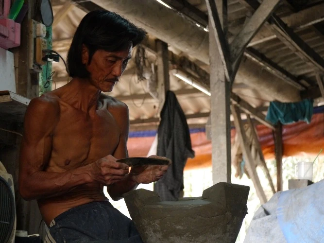Theo chủ lò gốm Nguyễn Văn Tiệp, làng nghề trước đây có đến hơn 30 cơ sở lớn nhỏ, giờ đây chỉ còn lò gốm của ông bám trụ