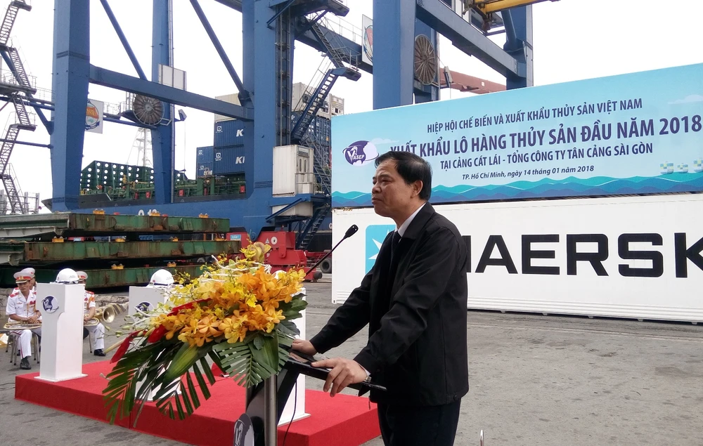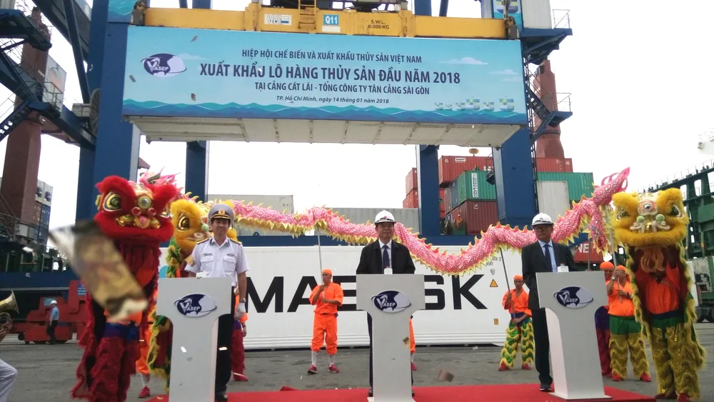 Nhân sự kiện xuất khẩu thủy sản Việt Nam cán đích trên 8 tỉ USD, Hiệp hội Chế biến và xuất khẩu thủy sản Việt Nam (VASEP) tổ chức “Lễ mừng xuất khẩu thủy sản Việt Nam hoàn thành kế hoạch 8 tỉ USD”, hiệp hội phối hợp với Công ty Tân Cảng Sài Gòn tổ chức sự kiện xuất khẩu lô hàng đầu năm 2018 với sự tham dự của Bộ trưởng Nguyễn Xuân Cường, Bộ NN&PTNT, vào sáng 14-1 tại cảng Cát Lái, TP.HCM.