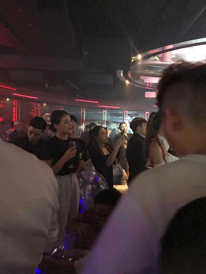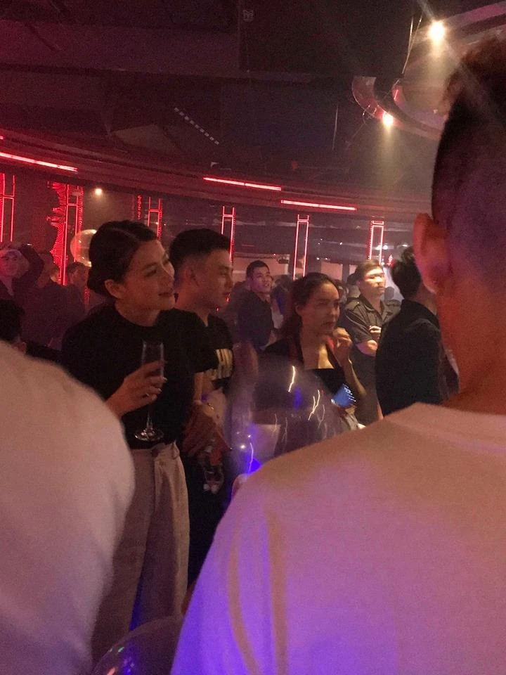 Phương Khánh mặc áo đen, tay cầm ly rượu. Ảnh do nguồn tin cung cấp.