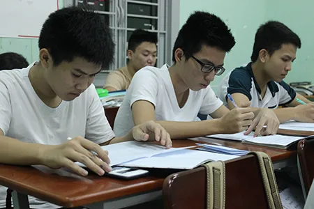 Học sinh Trường THPT Nhân Việt trong một giờ học ôn ngoài giờ tại trường.