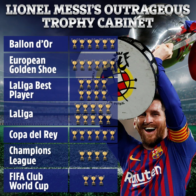 Thành tích của Messi tại Barcelona. ẢNH: THE SUN