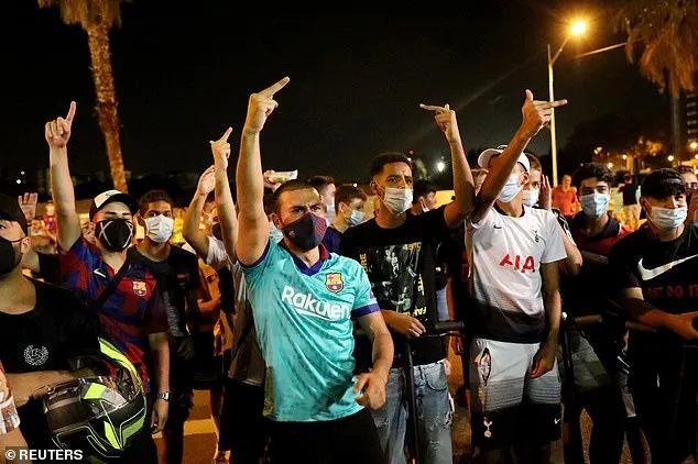 Người hâm mộ Barcelona đòi chủ tịch Bartomeu từ chức bên ngoài trụ sở đội bóng. ẢNH: REUTERS