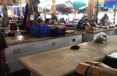 Nhiều sạp thịt heo ở chợ Xóm Mới, TP Nha Trang nghỉ bán. Ảnh: AN NAM